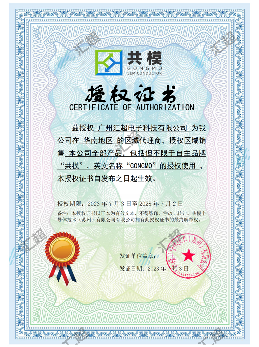 廣州匯超電子科技有限公司是一家以模擬芯片代理,分銷為主營業務的服務提供商。公司成立于2013年,服務超過3000家客戶。目前代理品牌有:北京芯洲SCT,江蘇潤石RUNIC,中科銀河芯GXCAS,艾諾半導體EINNO,源特科技VPS,領慧立芯LEGENDSEMI,芯祥科技EnergyMath,共模GONGMO,治精微ZJW,芯力特SIT,類比半導體等國產品牌;優勢分銷:ADI,TI,ST,圣邦微,3PEAK,納芯微,雅特力等... 【 了解詳情 】